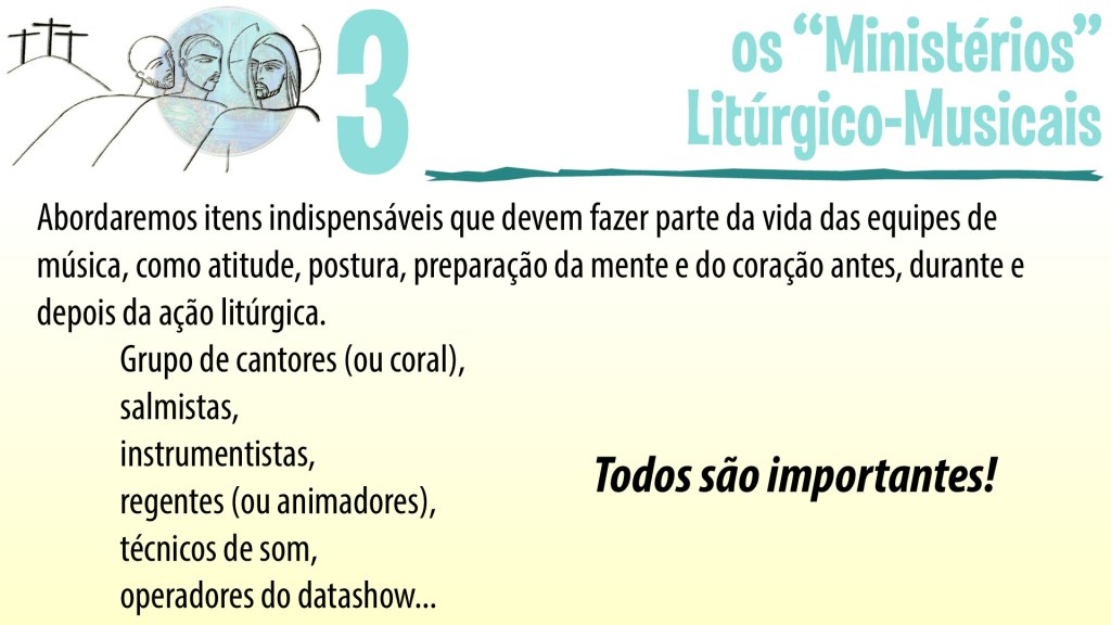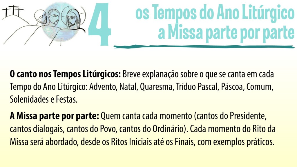 Nos dias 20 de maio, 09 e 23 de junho, e 07 de julho, a Forania Nossa Senhora de Fátima realizará um Ciclo de Estudos sobre a Música na Liturgia, onde conversaremos um pouco sobre este aspecto essencial para nossas celebrações litúrgicas e para a vida da Igreja.